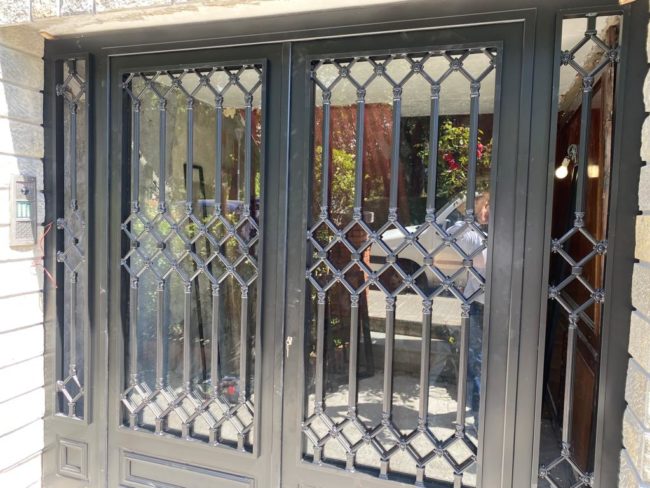 Puerta de portal en aluminio soldado y lacado en negro mate, instalado en Getxo, Avenida Cervantes. ¿Tienes un proyecto en mente? ¡Pídenos presupuesto! Ponte en contacto con nosotros y, encantados, te haremos un presupuesto ajustado a la medida de tus necesidades.
